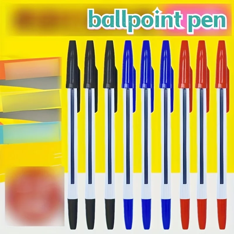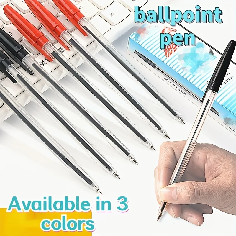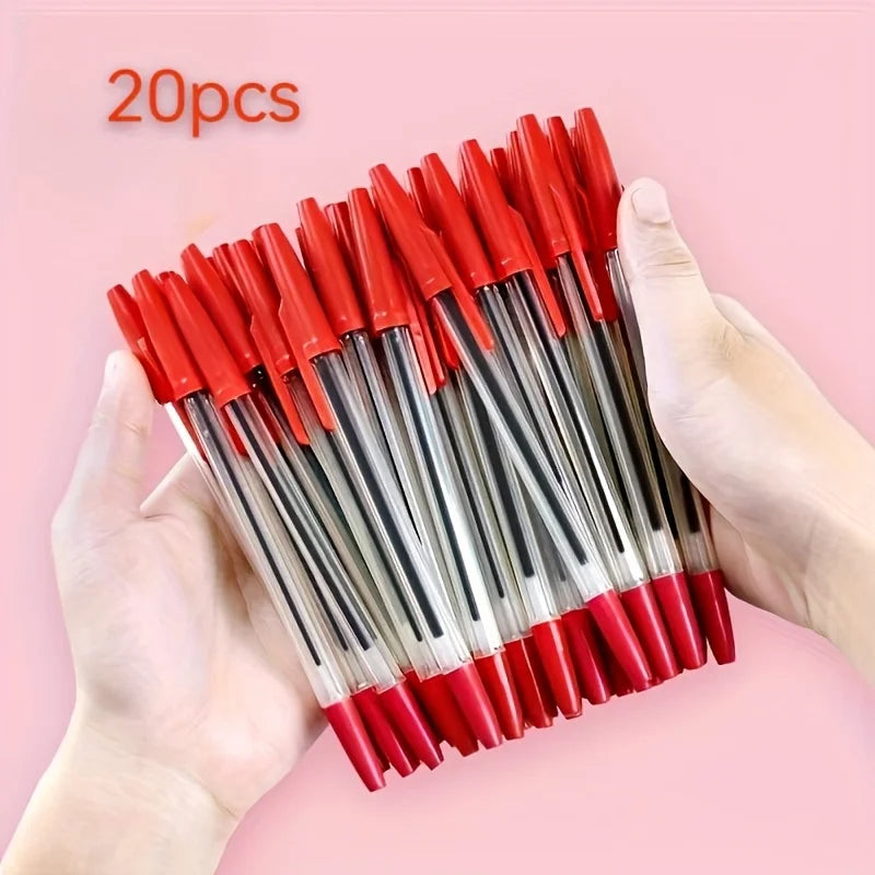 20-Pack Quick-Dry Round Ballpoint Pens - Polypropylene Barrel with Removable Cap, Medium Tip for Smooth Writing, For Office