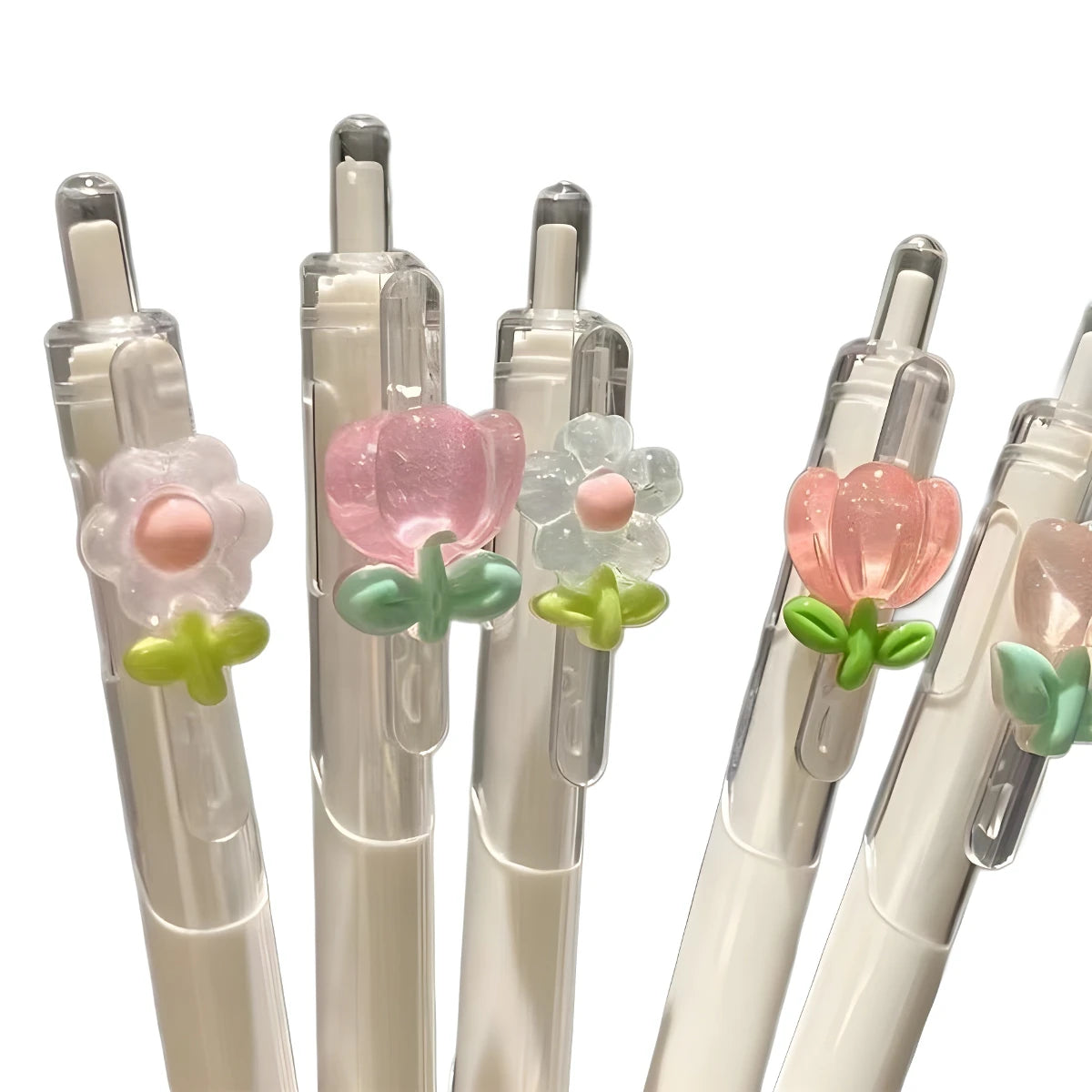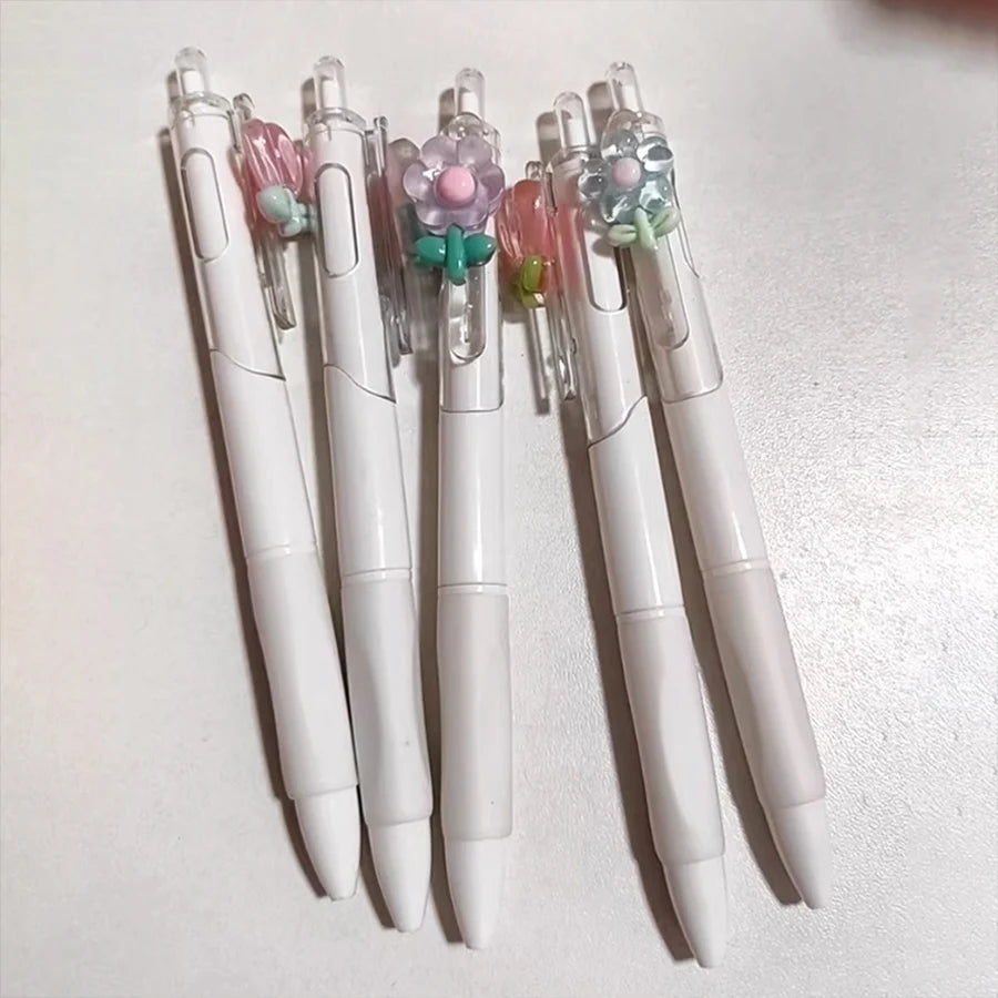 5-Pack Floral Neutral Pens Set, 0.5mm Quick-Dry Smooth Writing Ink, Ideal for Student Study & Office Signing, Perfect Gift Stati