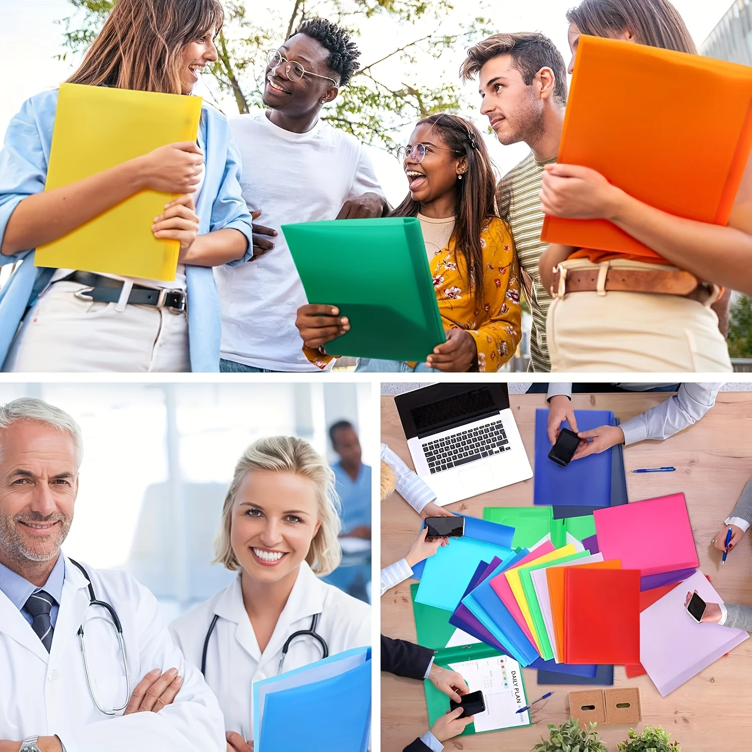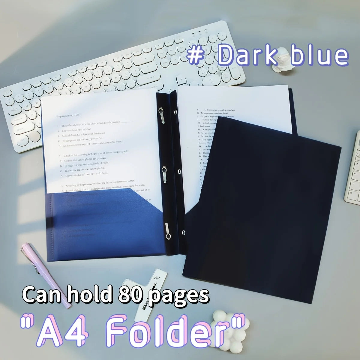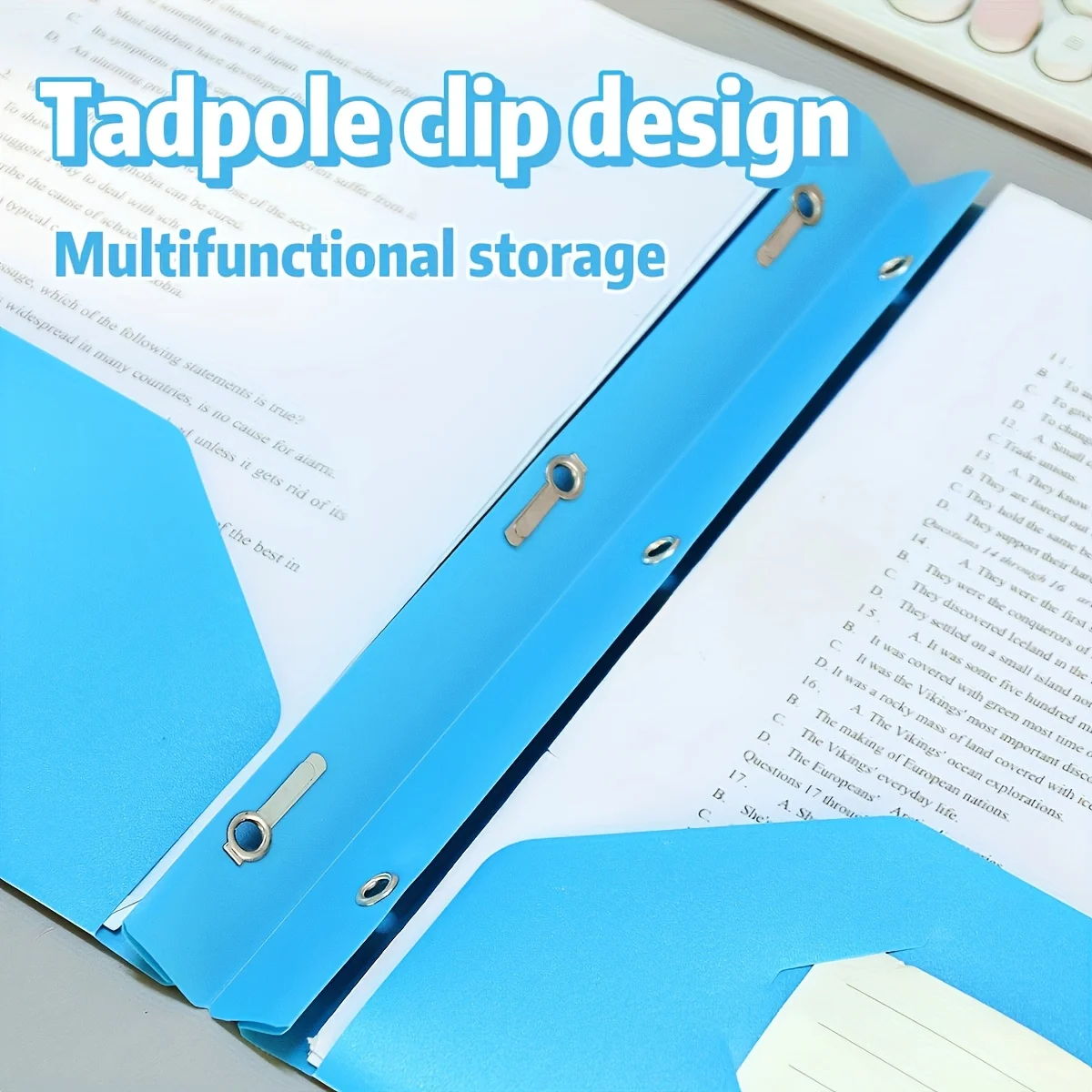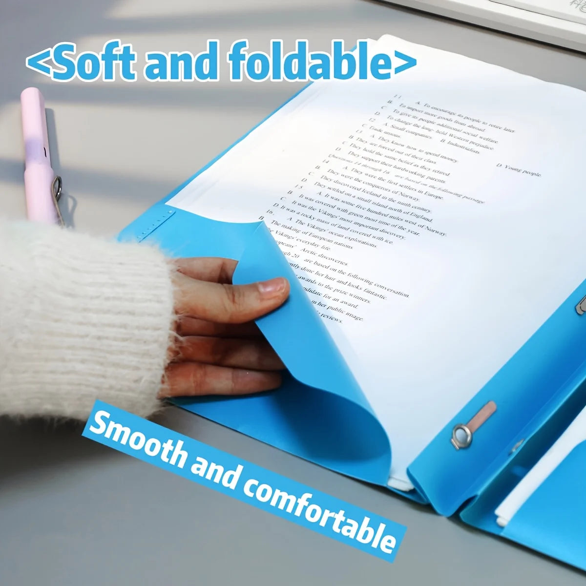 A4 Dual-Insert Tadpole Folder with D-Shaped Report Clips - Heavy-Duty PP Plastic Binder Organizer, Durable Document Storage