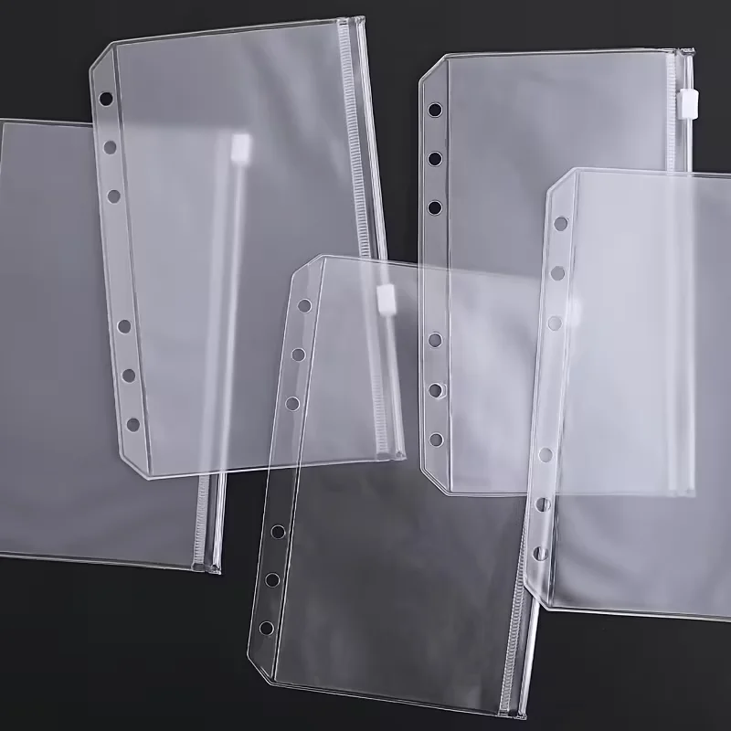 A5/A6/A7 Binder Pockets Binder Zipper Folders for 6-Ring Notebook Binder Waterproof PVC Leaf Pouch Document Filing Bags