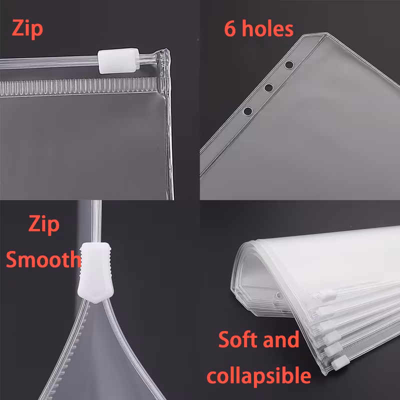 2. Durable zippers: Each A6 zipper bag is equipped with smooth and sturdy double zippers to ensure the safety of the contents, making it a reliable cash-loading envelope.